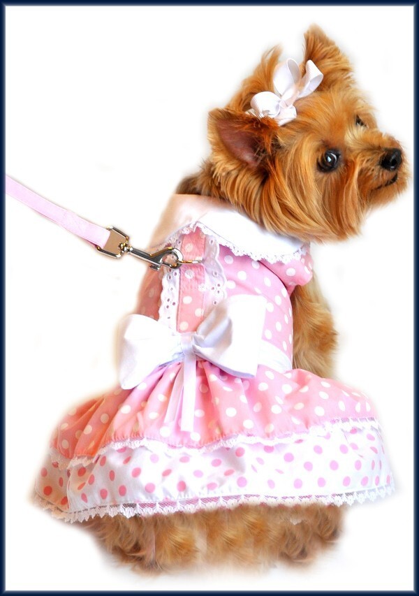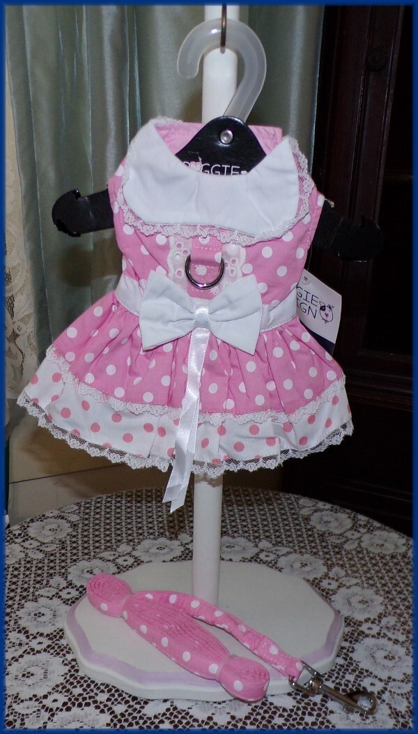 - NWT Doggie Design Pink White Polka Dot Harness Dress with Matching Leash Small