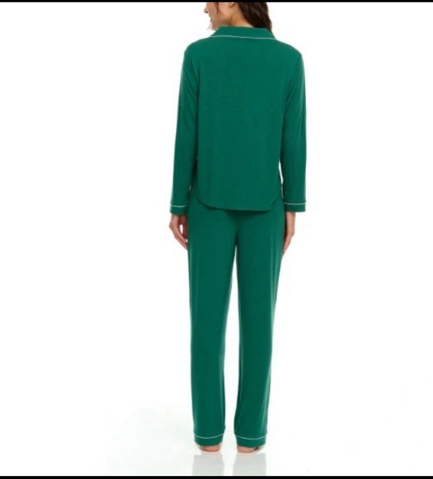- NWT Flora Nikrooz Green with White Piping Long Sleeve Knit Pajamas Size XS