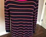 - NWT HALOGEN Cotton Blend Navy Coral Horizontal Striped Knit Top Sweater SZ L