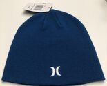 NWT HURLEY Icon Staples Beanie Hat Solid Blue Knit Embroidered Logo Men?s O/S.