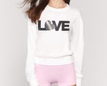 This is a great Spiritual Gangster sweatshirt. The Love heart print pullover crewneck top in white with black and pink/blue/metallic gold graphic. Size S