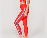 This is a great pair of Spiritual Gangster yoga/workout leggings. The Rainbow legging in Red (this is what the tag says but it's more like an orangey red/coral) with rainbow ribbon panel down the sides in metallic sparkly fabric. Size S