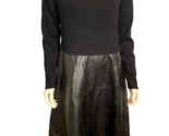 New with tags! T Tahari Black Knit Long Sleeve Round Neck A Line Dress with Faux Leather Skirt