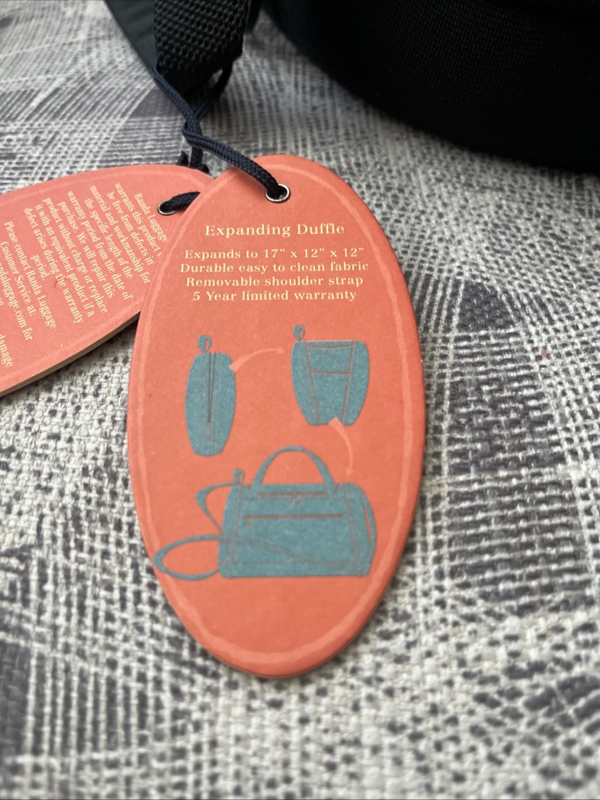 Bag is new, but does NOT include the shoulder strap. Duffle has double handles. Comes from a smoke free home. See pics for measurements and condition.