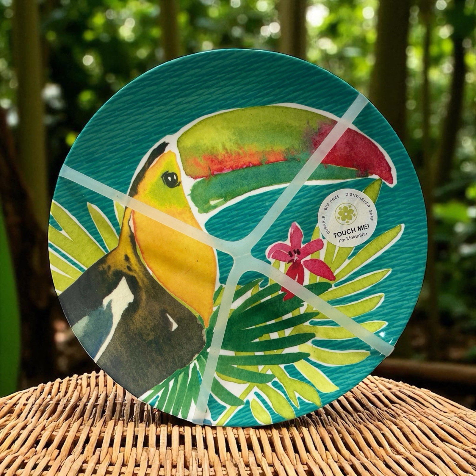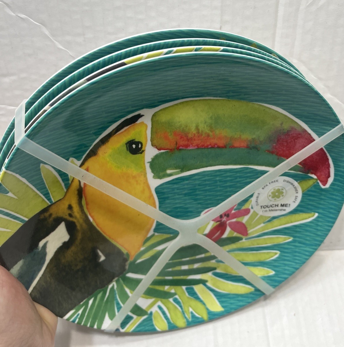 - NWT Tropical Theme Tucan 4 Pc Set Melamine 8.5" Plates by Life Happens