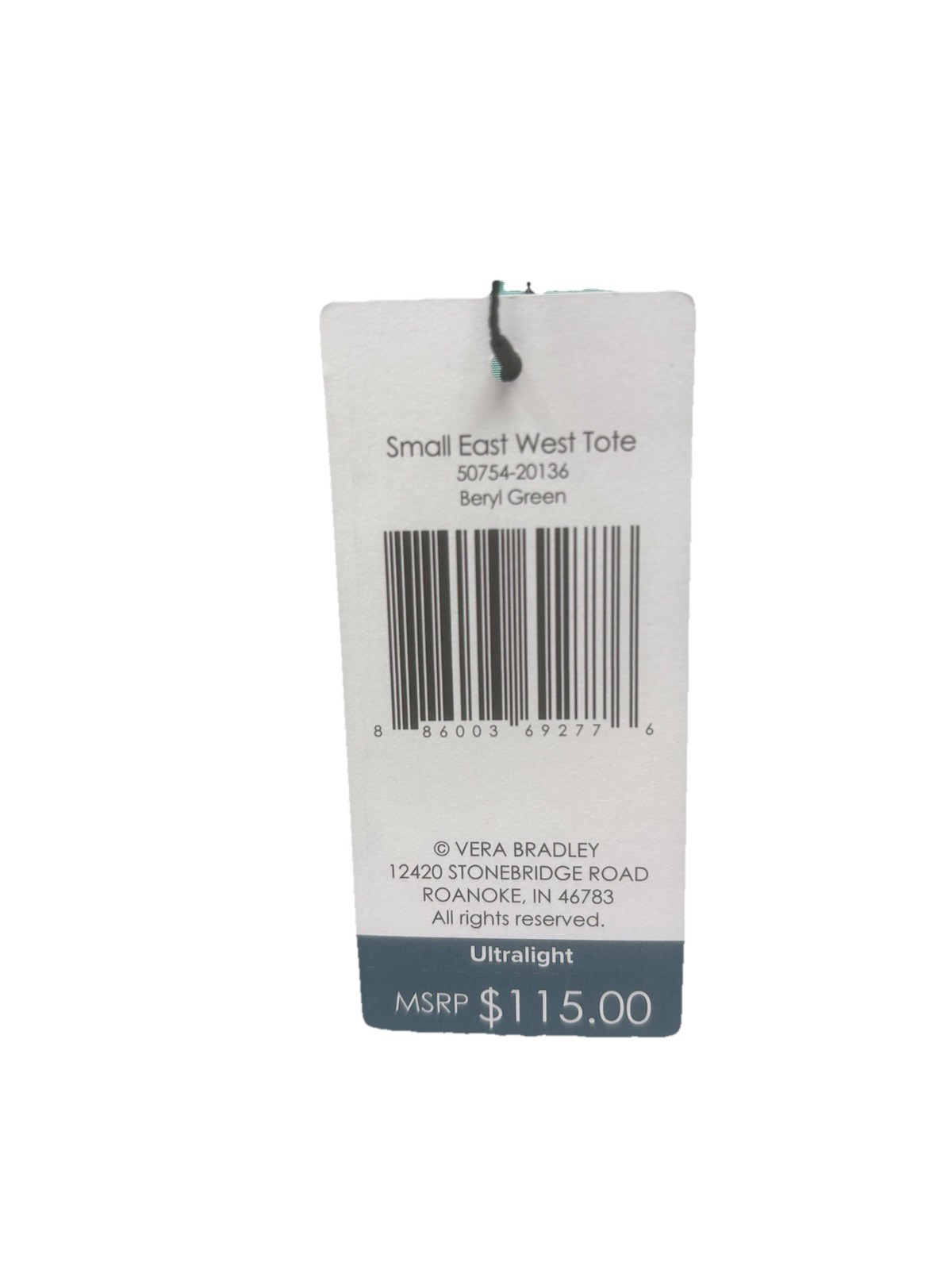 New with tags! Vera Bradley Small East West Tote Beryl Green Quilted