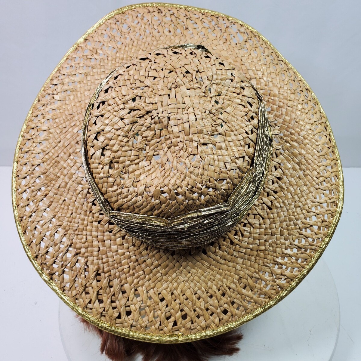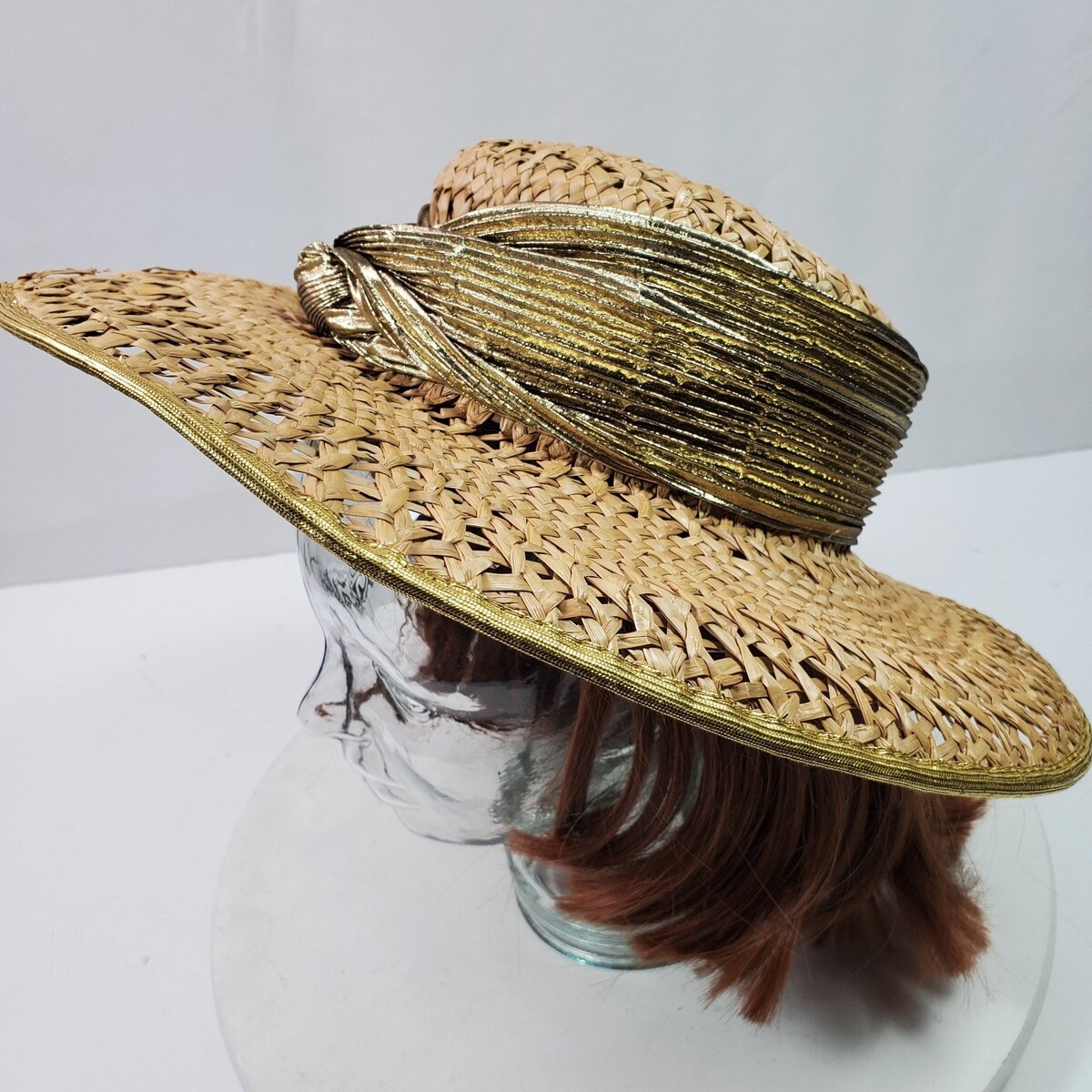 - NWT Whittall & Shon Straw Hat Sun Derby Formal Gold Knotted Wrap