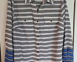 - NWT Womens Plus 1X NY Collection White/Black/Blue Stripes Shirt Top Blouse