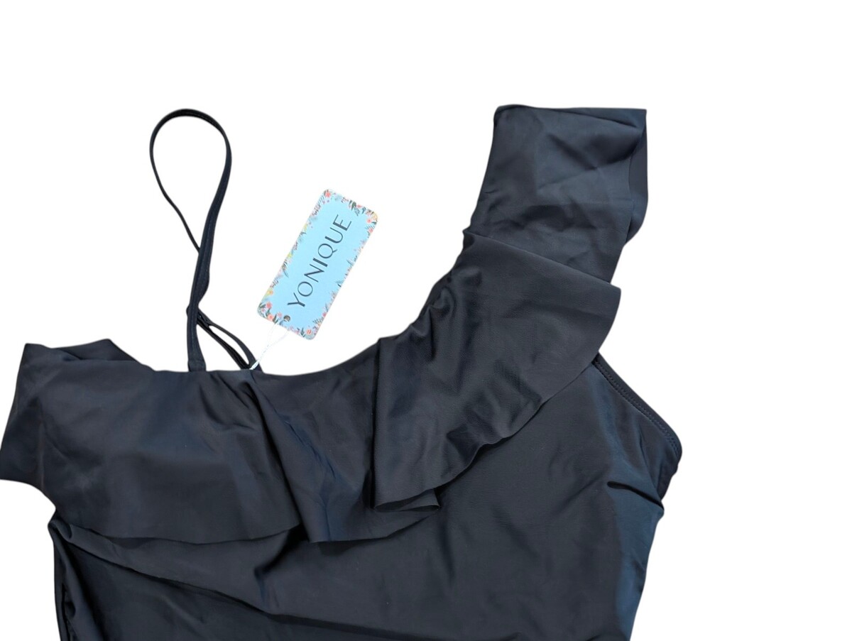 - NWT Yonique Tankini Top Size Medium Figure Flattering Asymmetrical Black NEW