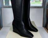 - NYDJ Jessica 35 VACHETTA Leather Tall Knee-High Black Wedge Boots Women's 10