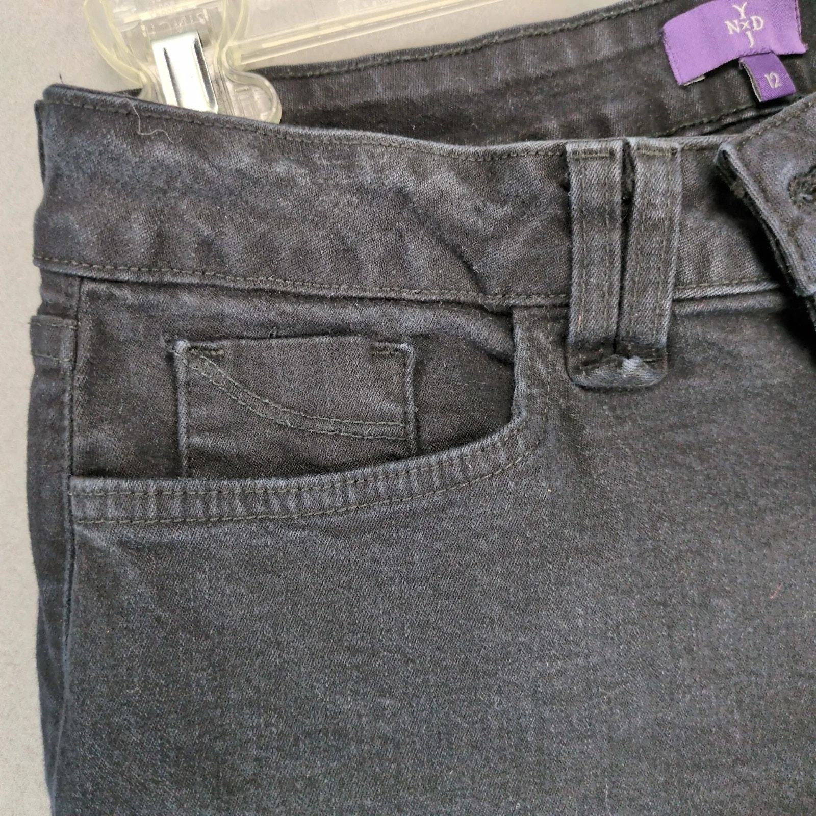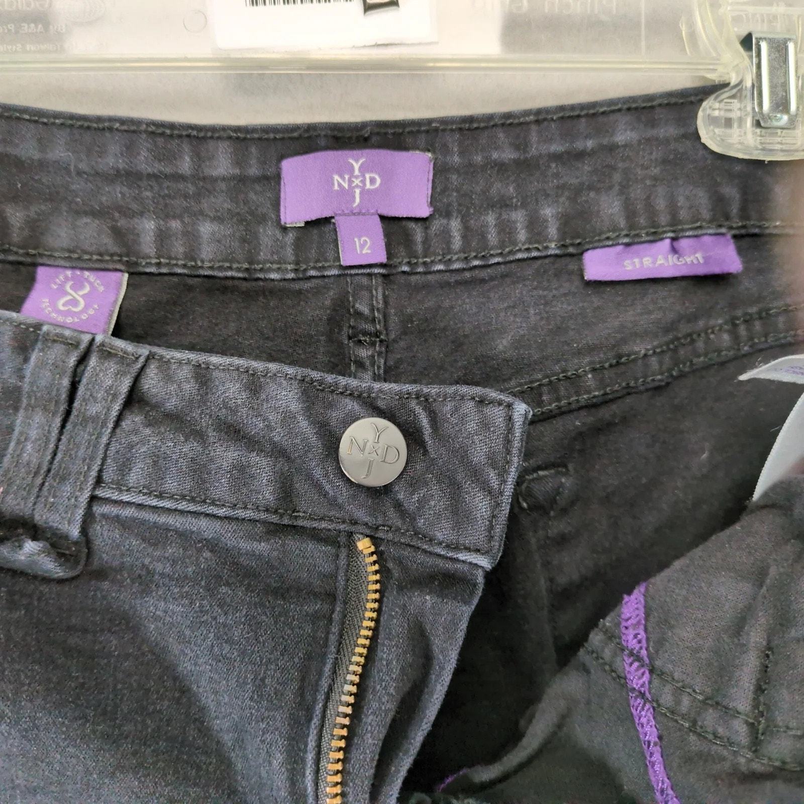 - NYDJ Straight Leg Jeans Women's 12 Stretch 30x29" Lift Tuck Black Denim Made USA