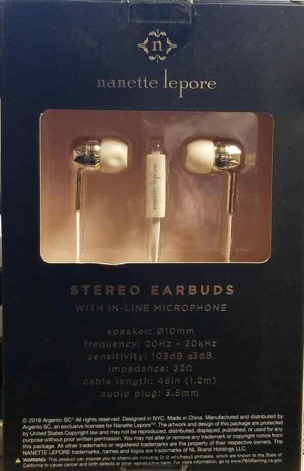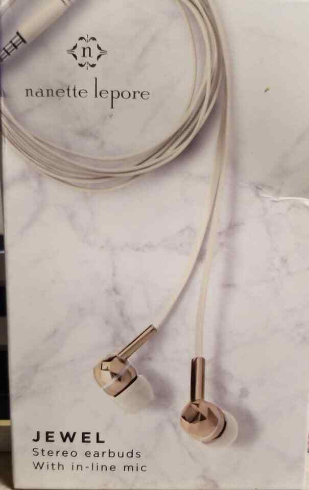 - Nanette Lepore Jewel Stereo Earbuds With In Line Mic Color Cream (LOC 404 CR-3)