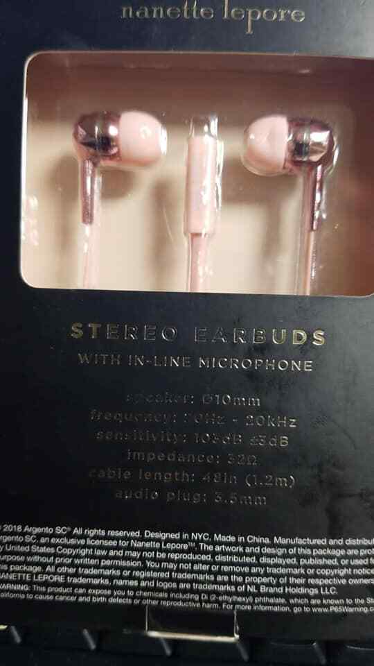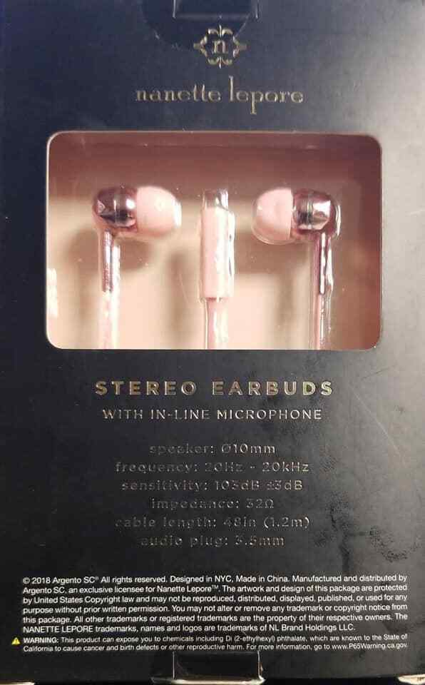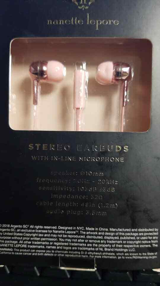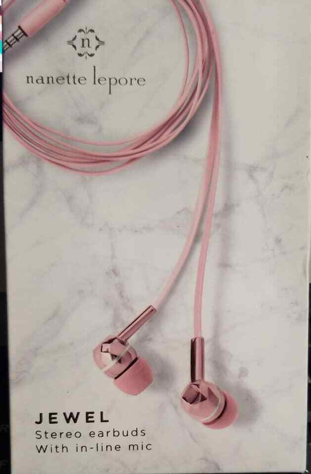 - Nanette Lepore Jewel Stereo Earbuds With In Line Mic Color Pink (LOC 404 CR-3)