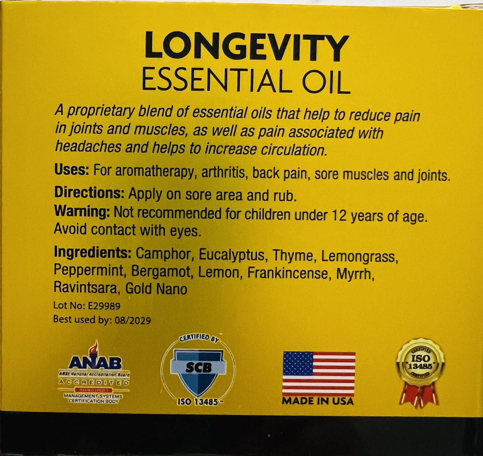 - Nanogize Health LONGEVITY ESSENTIAL OIL Deep Penetrating 21mL/0.71 ( Box of 6 )