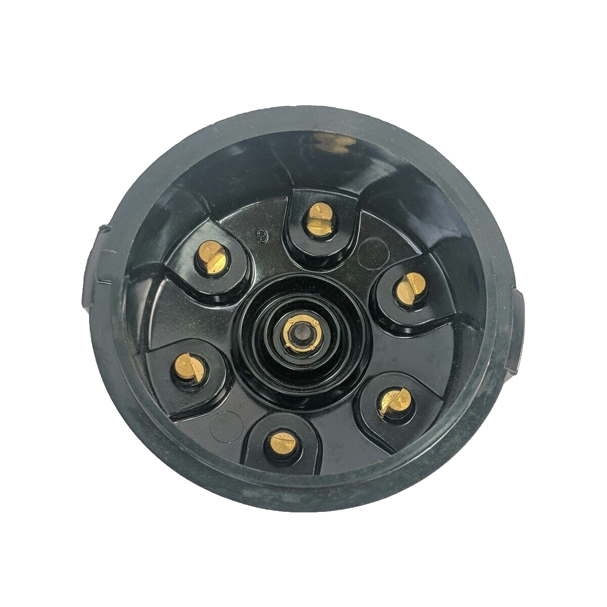 Exact item is shown. Vintage new old stock distributor cap with original non-retail packaging. Dark green with brass contacts. Made in USA. No returns if installed. Please review our business policies in our store for information regarding returns, shipping and warranties.