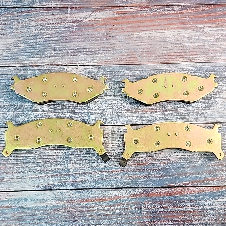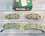 Exact item set is shown. New old stock semi metallic brake pads, may include partial packaging. Set weight 4.25 lbs. Made in USA. No returns on installed items or partial sets. This item is new with opened or damaged packaging. It may or may not be a customer return. It has been inspected and passed quality control to insure the condition described and contents are accurate. It may show minor wear from handling. Please review actual photos as stock photos are not the actual item, our photos are. You will ONLY receive exactly what is shown in photos, regardless of what might have originally been included.