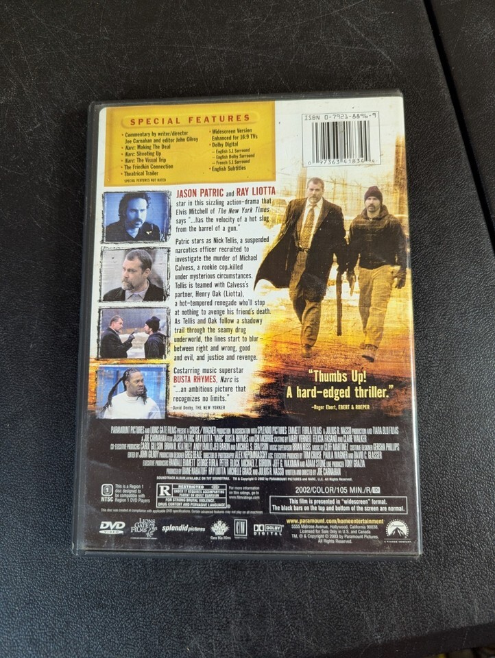 "Narc" is a mystery/suspense film released on DVD in 2002. Directed by Joe Carnahan and produced by Ray Liotta and Tom Cruise, the movie is in English and has an R rating. The film follows the story of a hitman who begins to question his existence upon meeting a mysterious woman. With a thrilling plot and strong performances, "Narc" is a must-watch for fans of the genre.