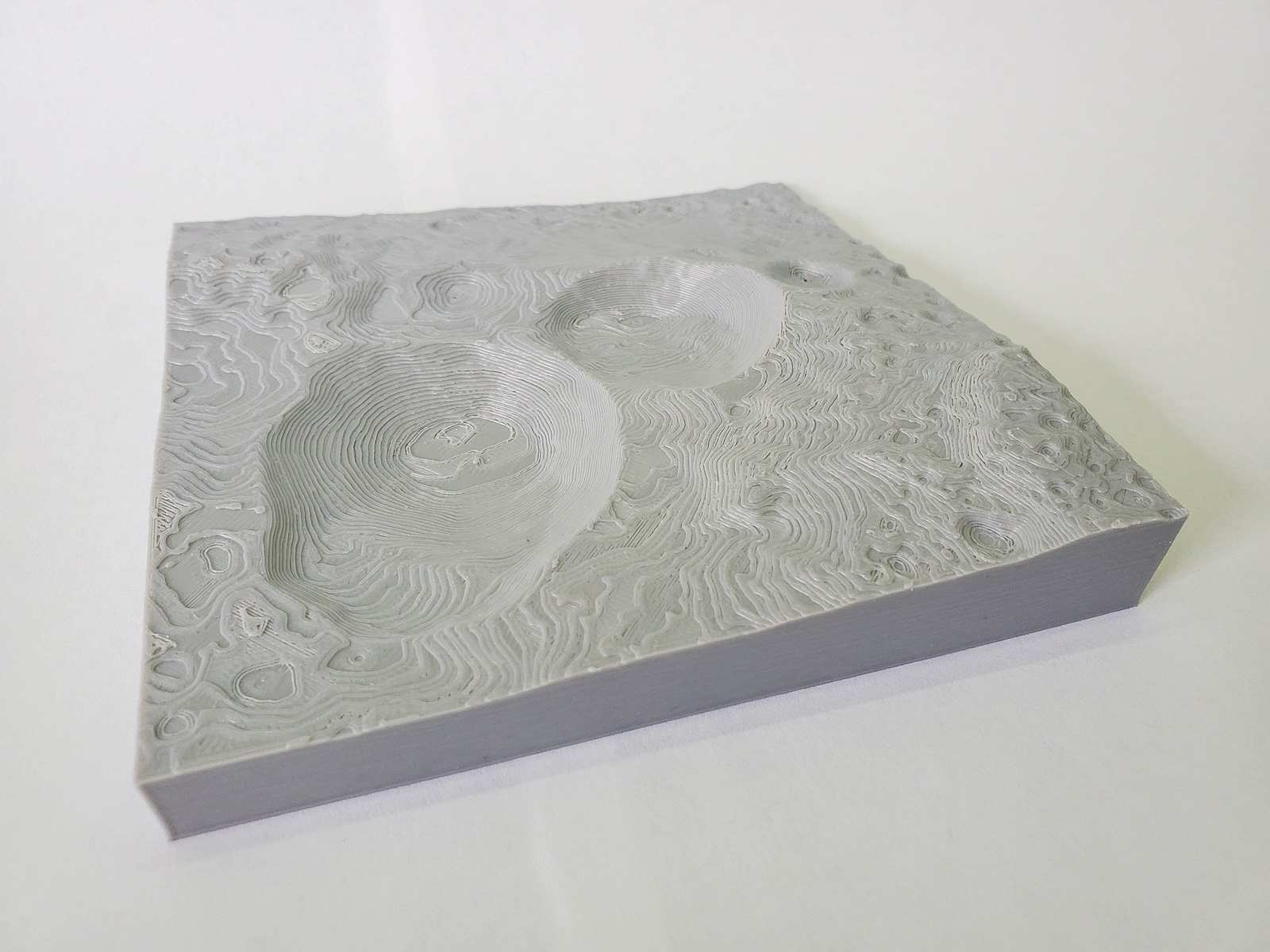 3D topography map of Snowman Crater on the asteroid Vesta. 1 cm of this 3D map is equal to 14.2 km on the asteroid and the total area of the map is 180 km x 180 km. The modeling data and imagery was taken on NASA's Dawn mission in August 2011 Explore off world locations like never before with our stunning 3D topographical map ??. Experience its surface in accurate detail. A must-have for space enthusiasts! ? Vesta, the brightest asteroid in our solar system, is the second-largest object in the main asteroid belt between Mars and Jupiter. The space rock measures about 330 miles (530 kilometers) across. The bottom crater is named Marcia, the middle crater, Calpurnia, and the top crater, Minucia. It is likely that Marcia and Calpurnia formed from the impact of a binary asteroid and that Minucia formed in a later impact. The region surrounding the three craters is relatively smooth because this is the ejecta blanket of the craters.