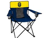 The Elite Chair goes where you do. Made of a sturdy, powder-coated, steel frame and double layered polyester, it has an 18" x 23" seating area that safely holds up to 275 pounds. The Elite Chair features adjustable armrests with mesh cup holders. Your favorite team's logo is screen printed on the vented, breathable front and back as well as on the matching drawstring carrying bag with shoulder strap. Flat, wide-based feet provide better stability. The Elite Chair is ideal for showing your spirit while tailgating, camping, cooking out, or any fun outdoor activities.