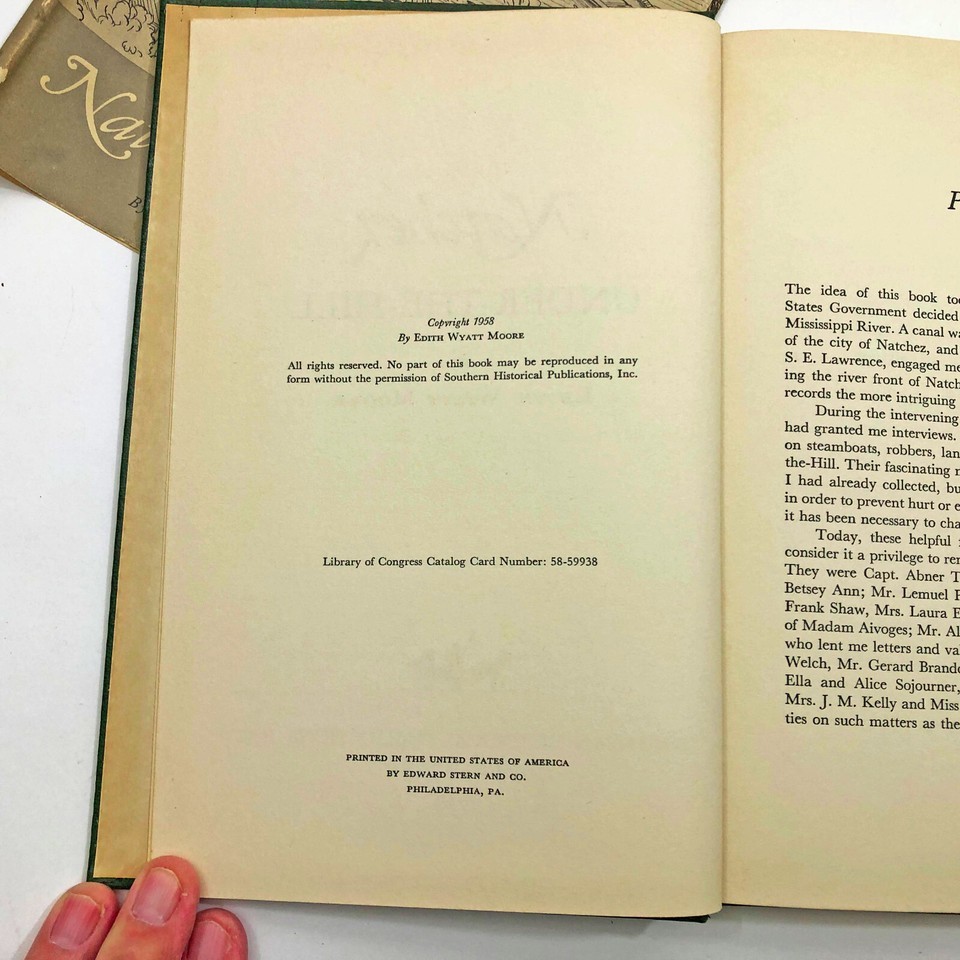 - Natchez Under-the-Hill Edith Wyatt Moore VINTAGE 1958 Mississippi History HBDC