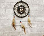 - Native American Horned Bison Steer Cow Skull Dreamcatcher With Beaded Feathers