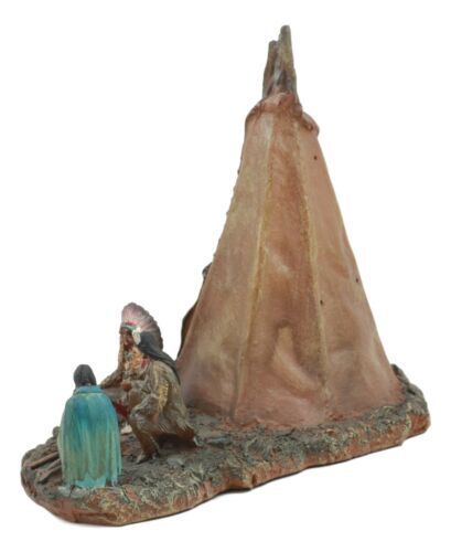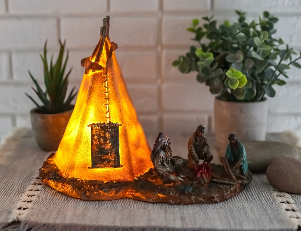 - Native American Indian Chief and Elders Building Fire By LED Tipi Tent Statue