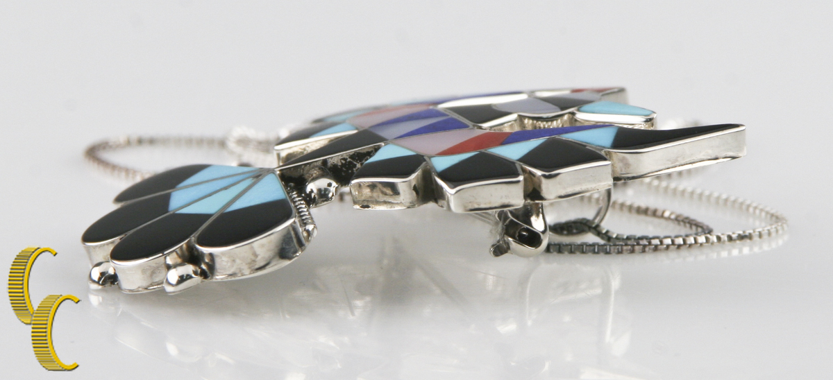 Native American Semi-Precious Inlay Eagle Necklace and Earring Set w/ Box Chain