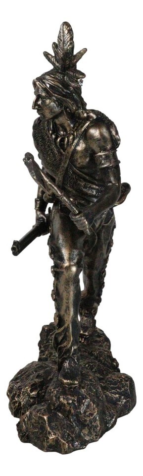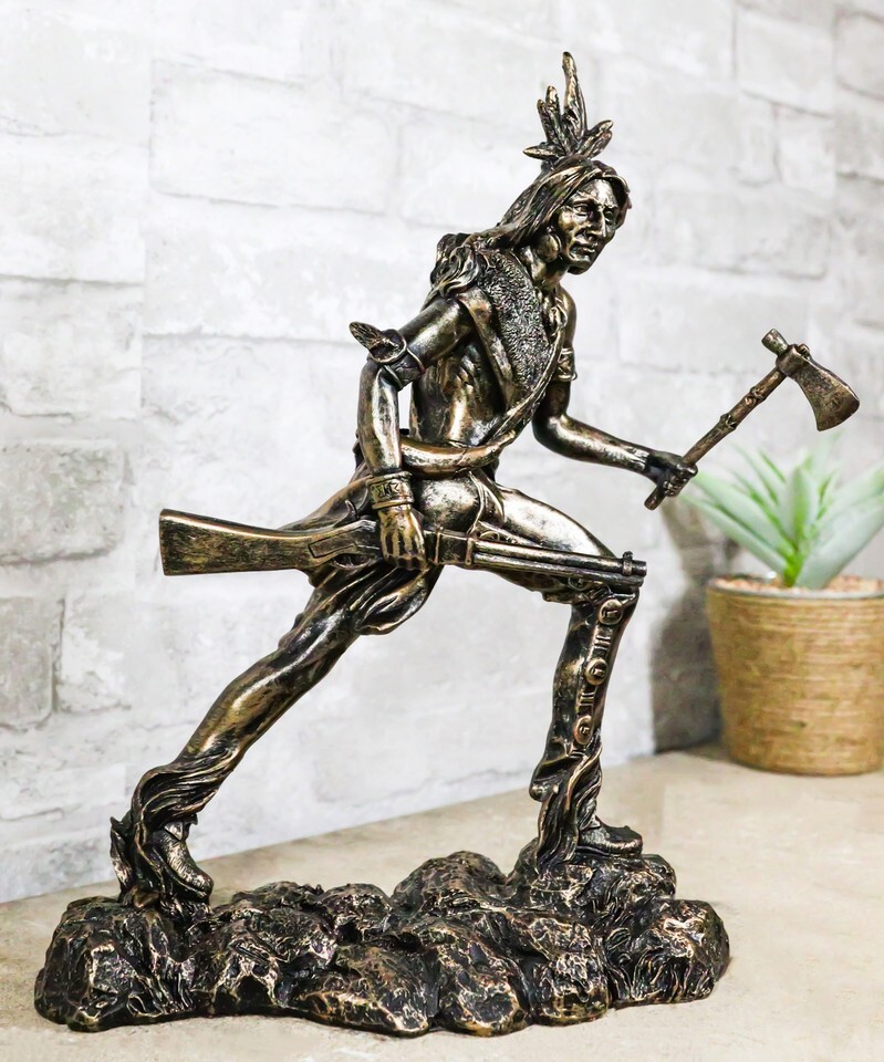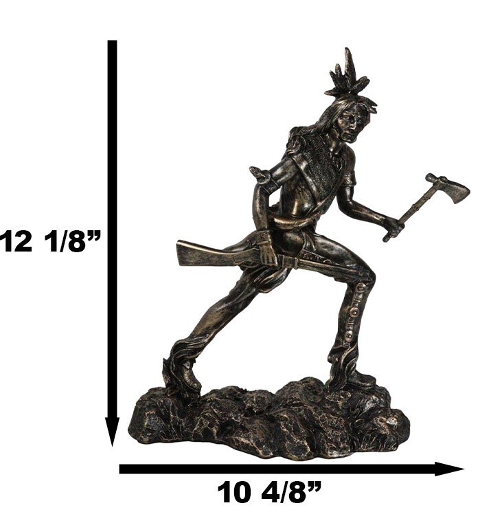 - Native Sioux Indian Tribal Warrior Chief Holding Tomahawk Axe And Rifle Figurine