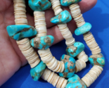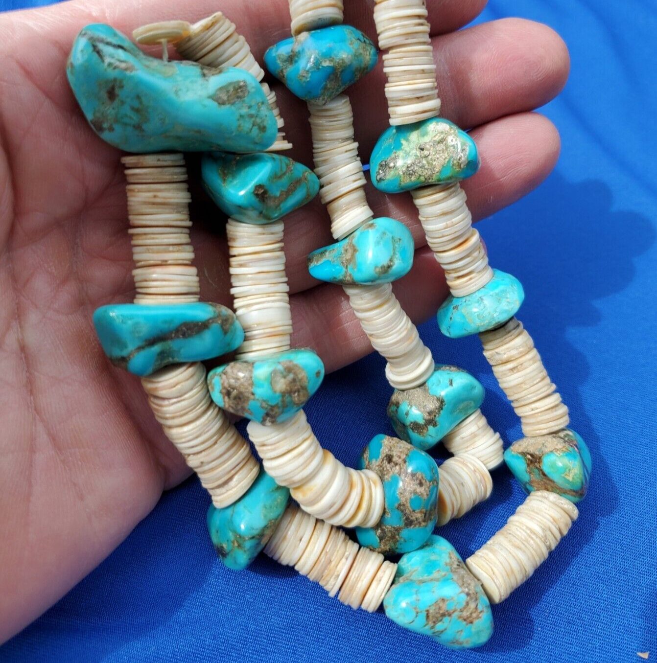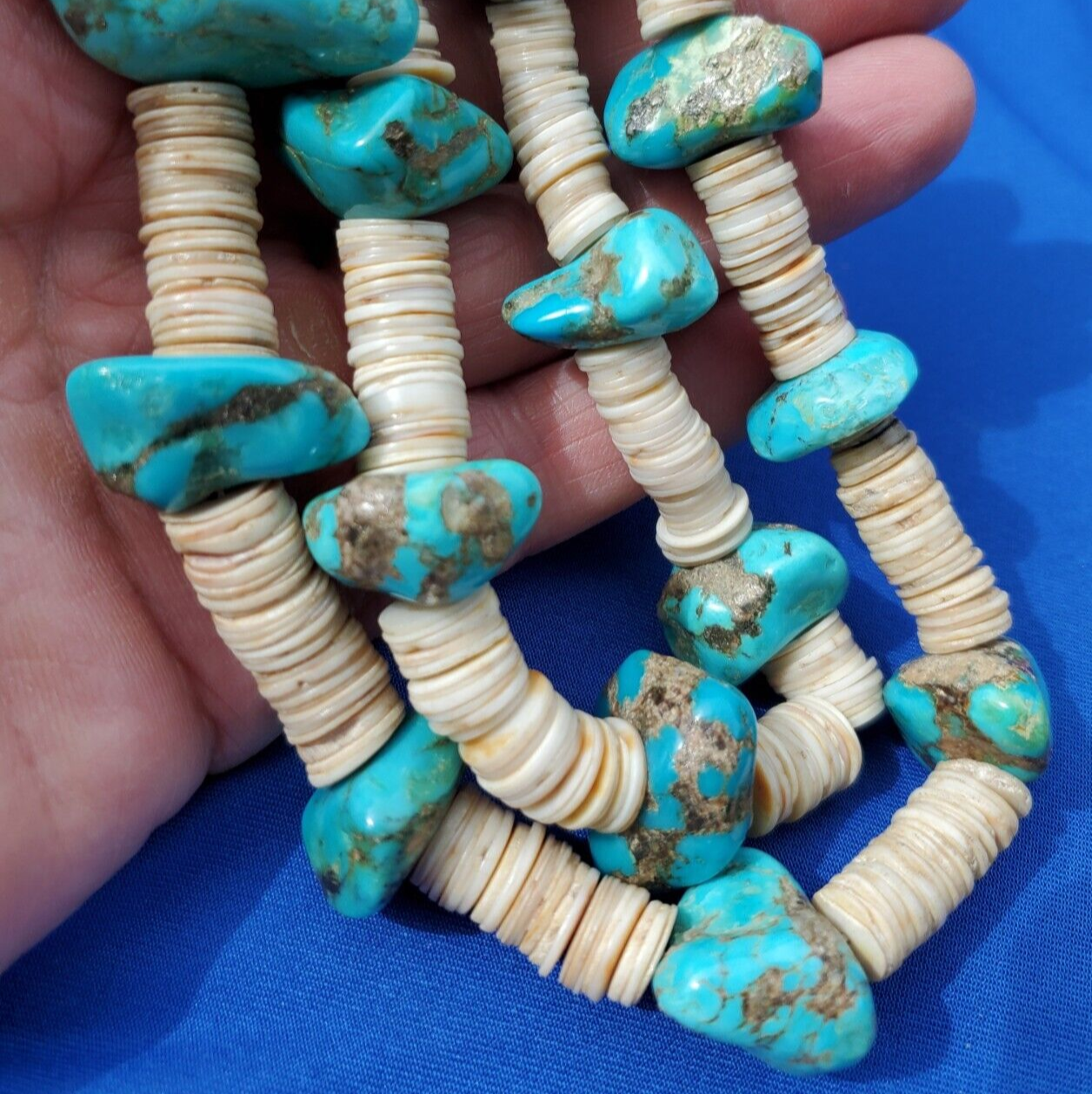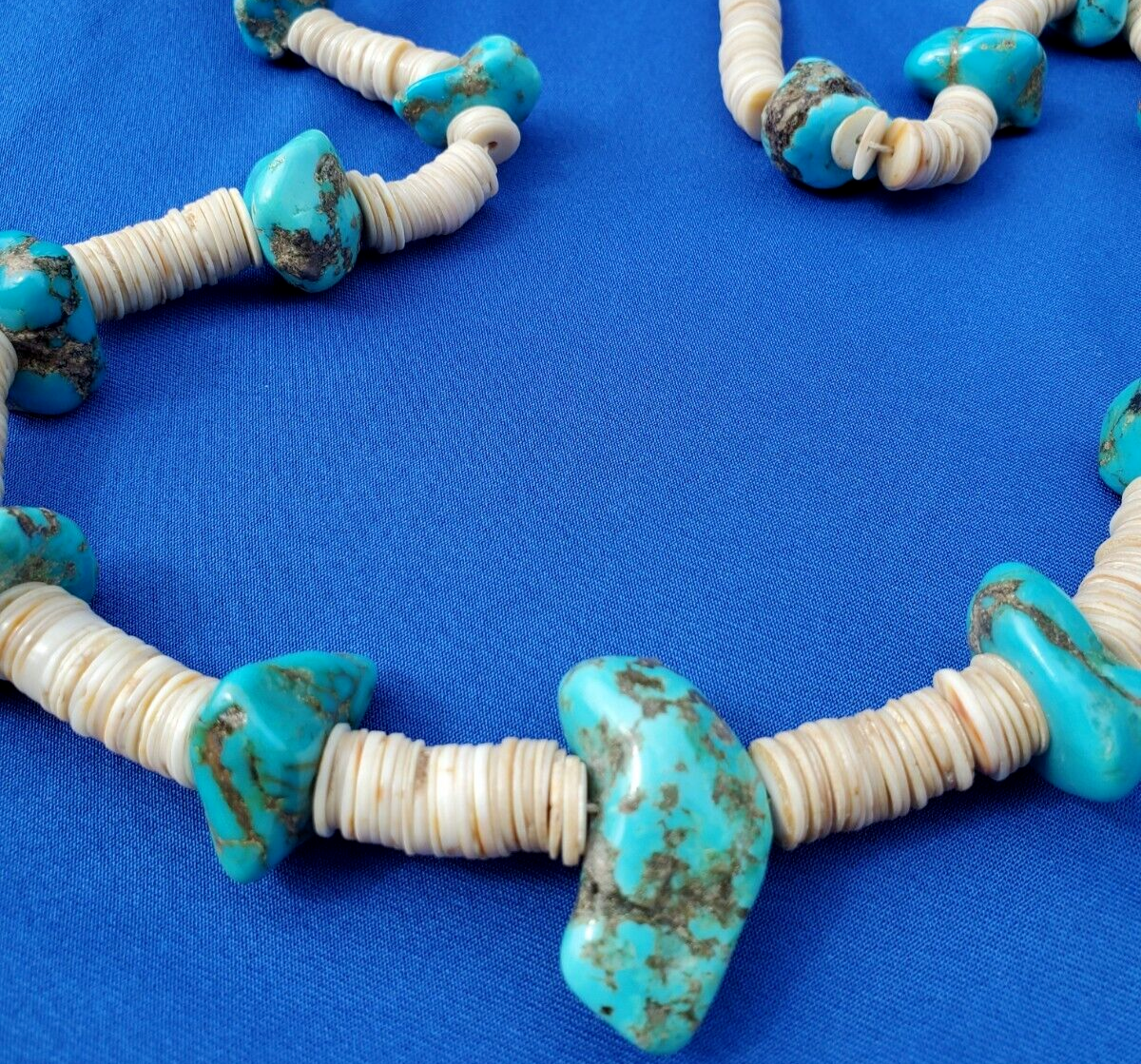- NATIVE VINTAGE SANTO DOMINGO TURQUOISE WHITE SHELL STERLING SILVER NECKLACE 28"