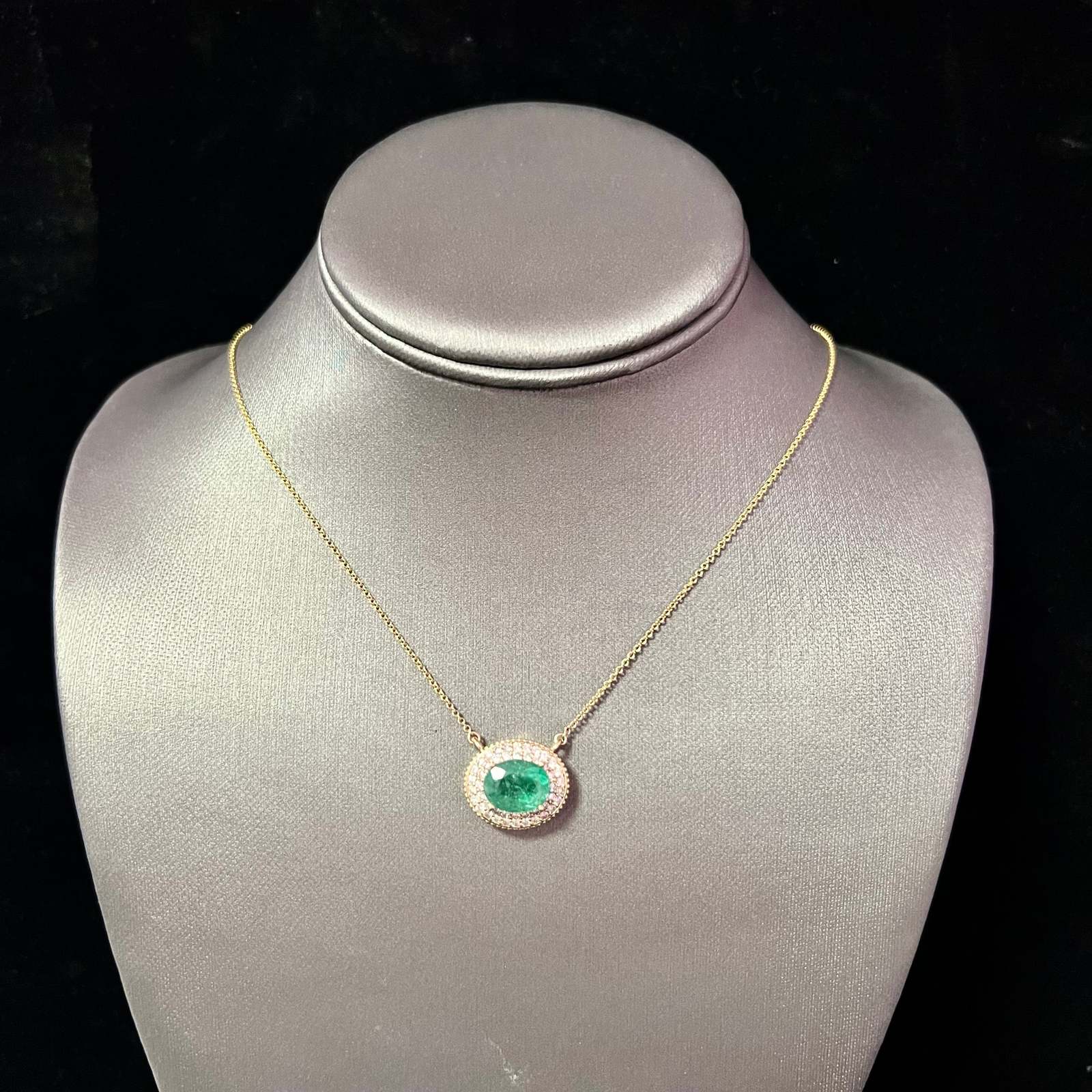 - Natural Emerald Diamond Necklace 18" 14k Gold 6.29 TCW Certified $6,950 213253