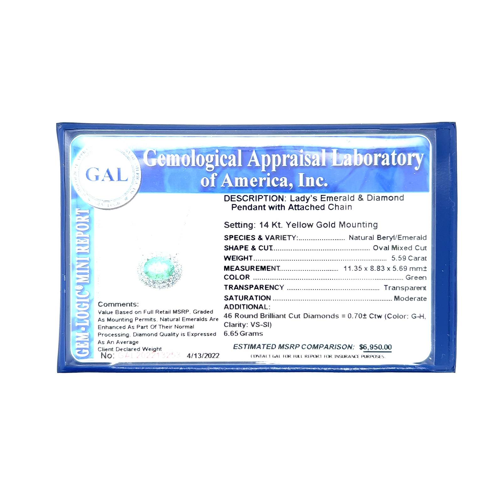 Natural Emerald Diamond Necklace 18" 14k Gold 6.29 TCW Certified $6,950 213253