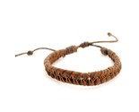 - NATURAL LEATHER SURFER BRACELET Brown Tight Braided Men Women Hemp Adjustable