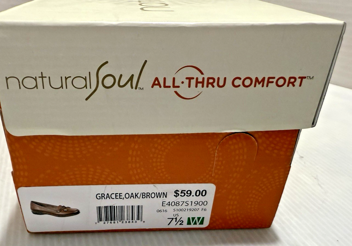 - Natural Soul Shoes Womens 7.5 M Gracee Casual Slip On Loafer Black Faux Leather