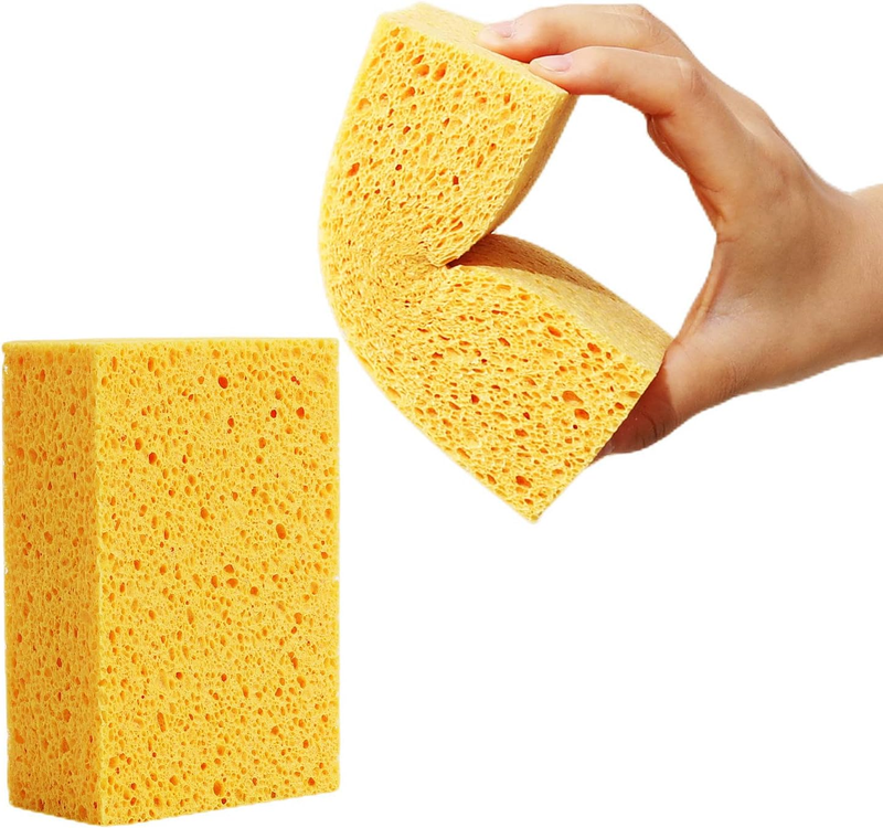 The cleaning sponge is made of high-strength natural cellulose sponge. This makes it super absorbent and easy to remove oil stains.