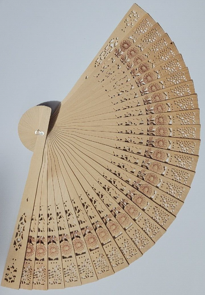 You are Buying a Brand New And Factory Sealed Natural Wood Large Lace Floral Folding Hand Held Plastic Chinese Fan.... Length 9 inches; Opened Width 16.5 inches, party, home decoration, wall decoration, festival season, school play, tea party, Halloween costume, dancing, wedding, prom, pageant, cosplay or any other special occasion. These floral folding hand fans are made of Natural Wood with luxury printed vintage flowers, Natural Wood around edge, metal U ring, and hollow carved Natural Wood staves.