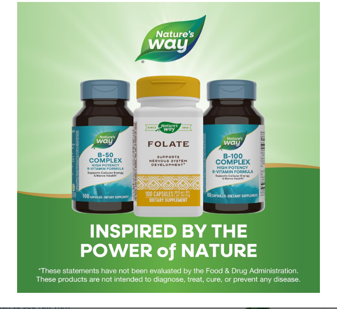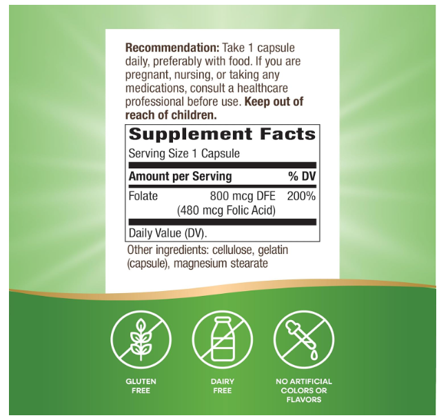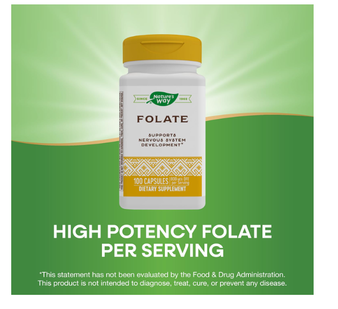- Nature's Way Folic Acid, 800 mcg DFE per serving, 100 Capsules