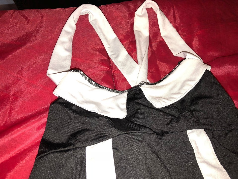 NAUGHTY SEXY WOMAN HALLOWEEN COSPLAY COSTUME BEETLEJUICE VERY SHORT DRESS STRAPS