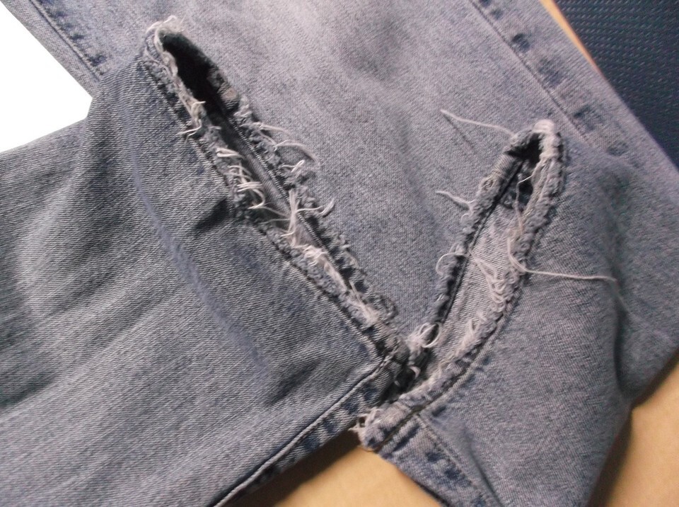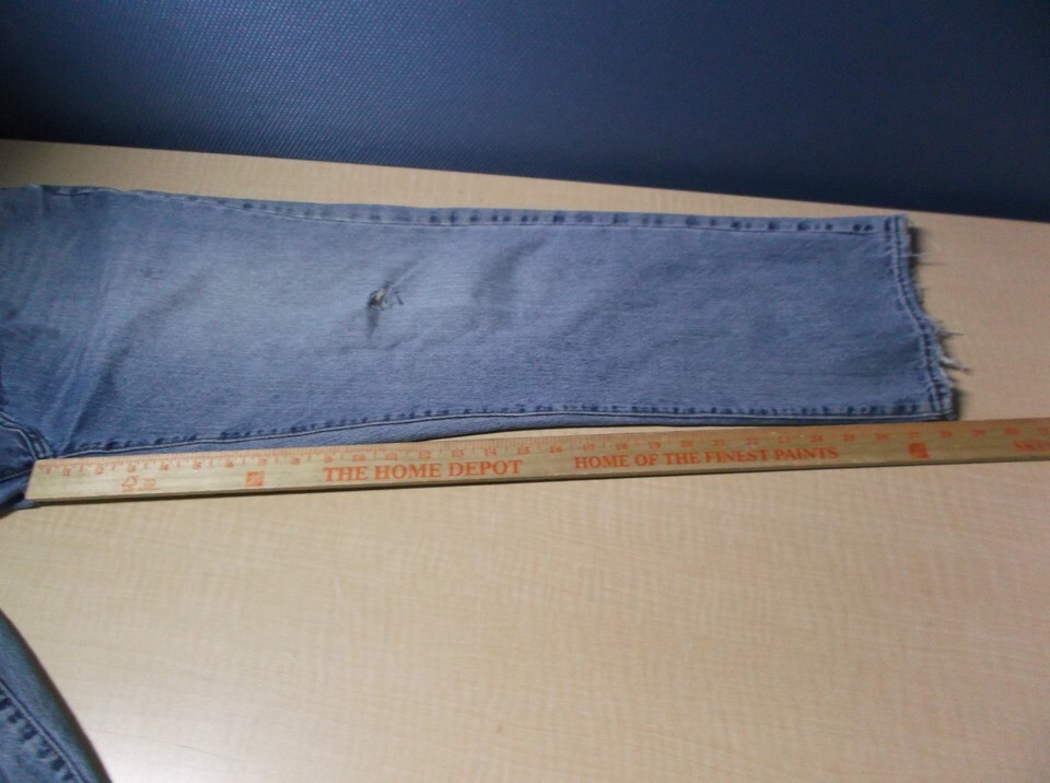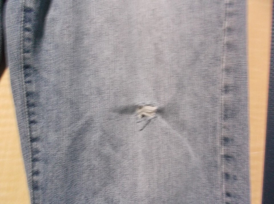 DEFECTS: MINOR HOLE ON THE LEFT KNEE CUFFS SHOW WEAR SMALL HOLE UNDER THE RIGHT BACK POCKET. DOES NOT AFFECT THE OPERATION OF THE PANTS.