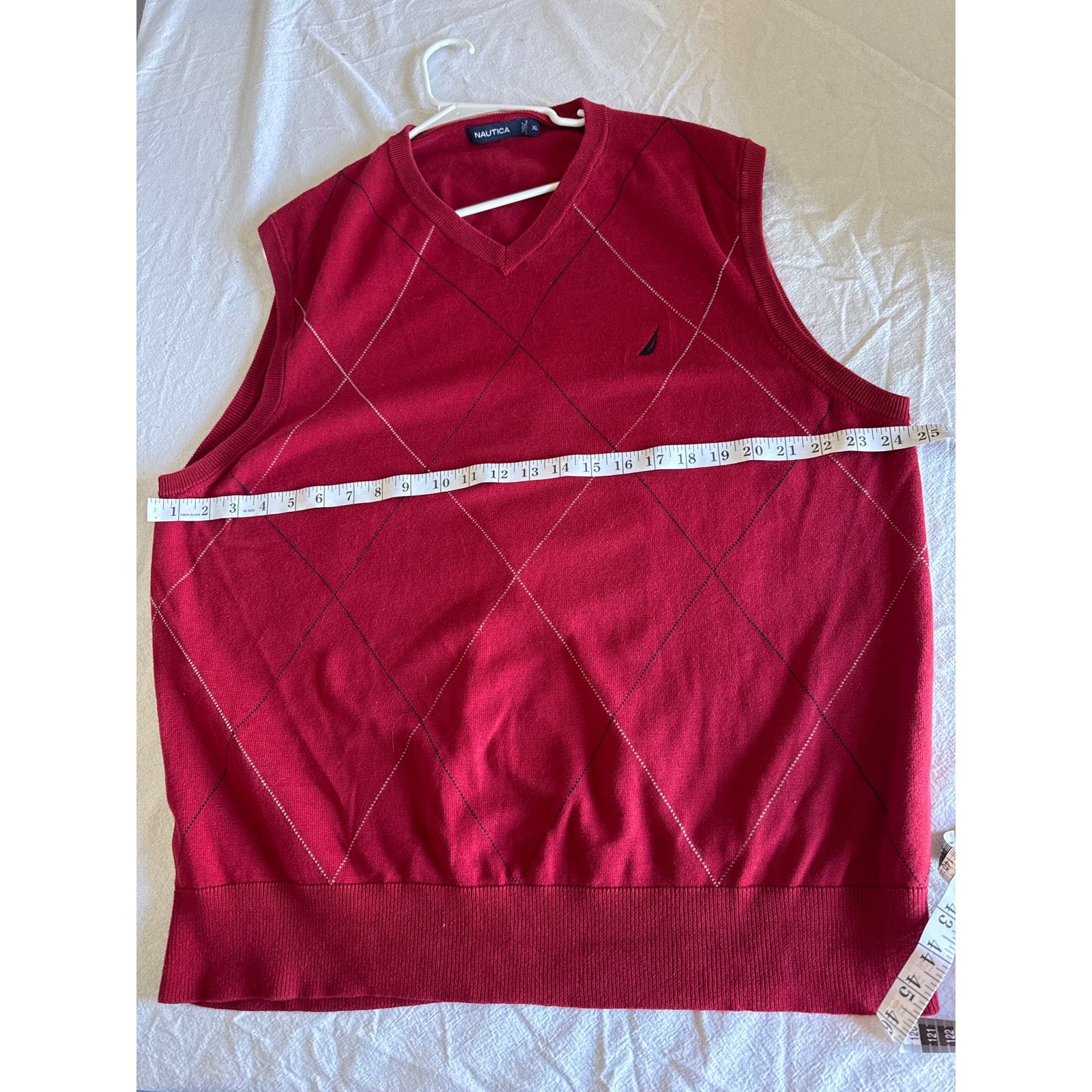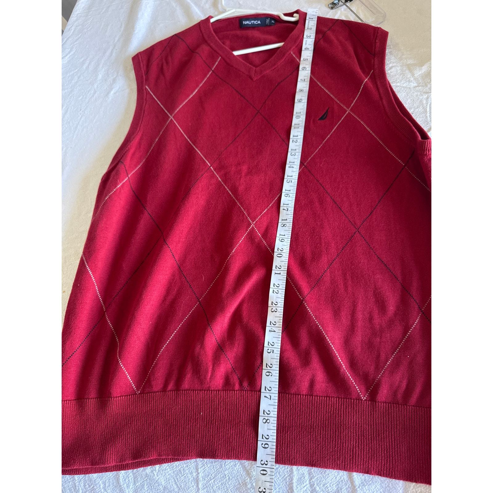 - Nautica Men’s XL Red Argyle Cotton Knit Sweater Vest V-Neck Pullover Classic