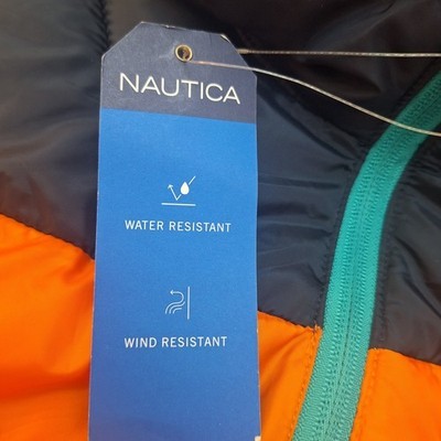 - Nautica Poly Hooded Regular Fit Puffer Jacket Mens Sz Large Hunt Orange NWT $175