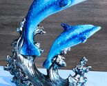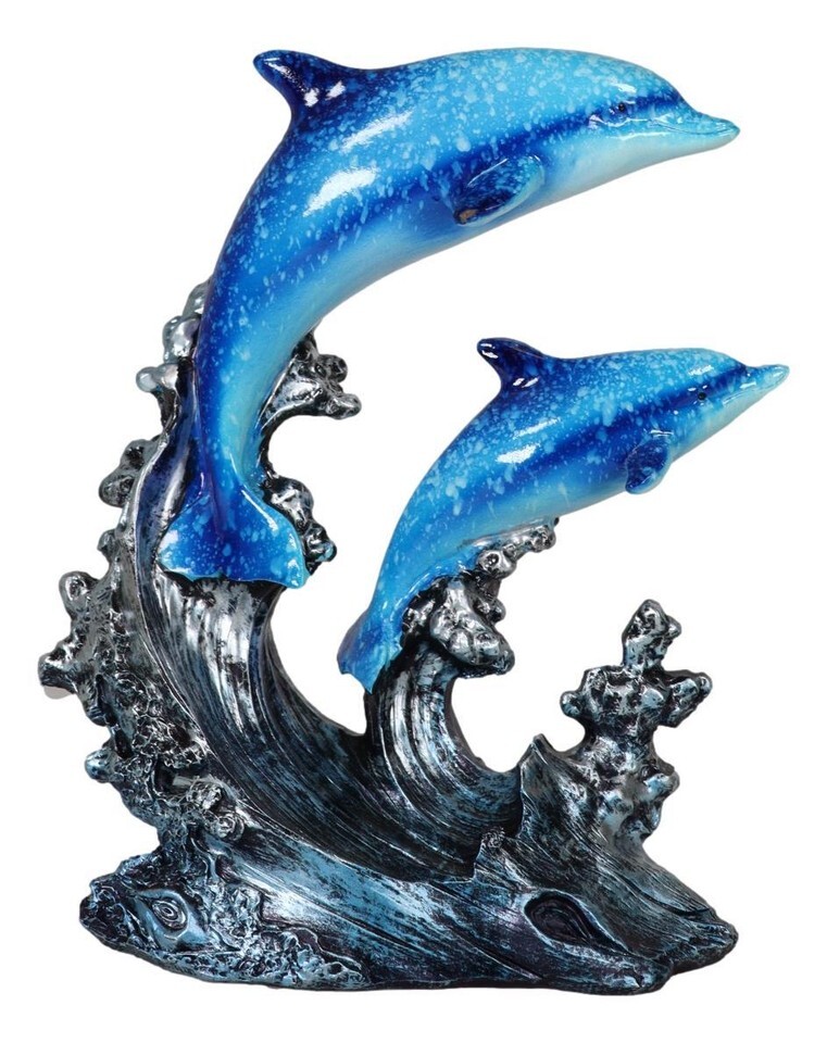 - Nautical Marine Sea Ocean 2 Blue Dolphins Swimming Over Reef Waves Figurine