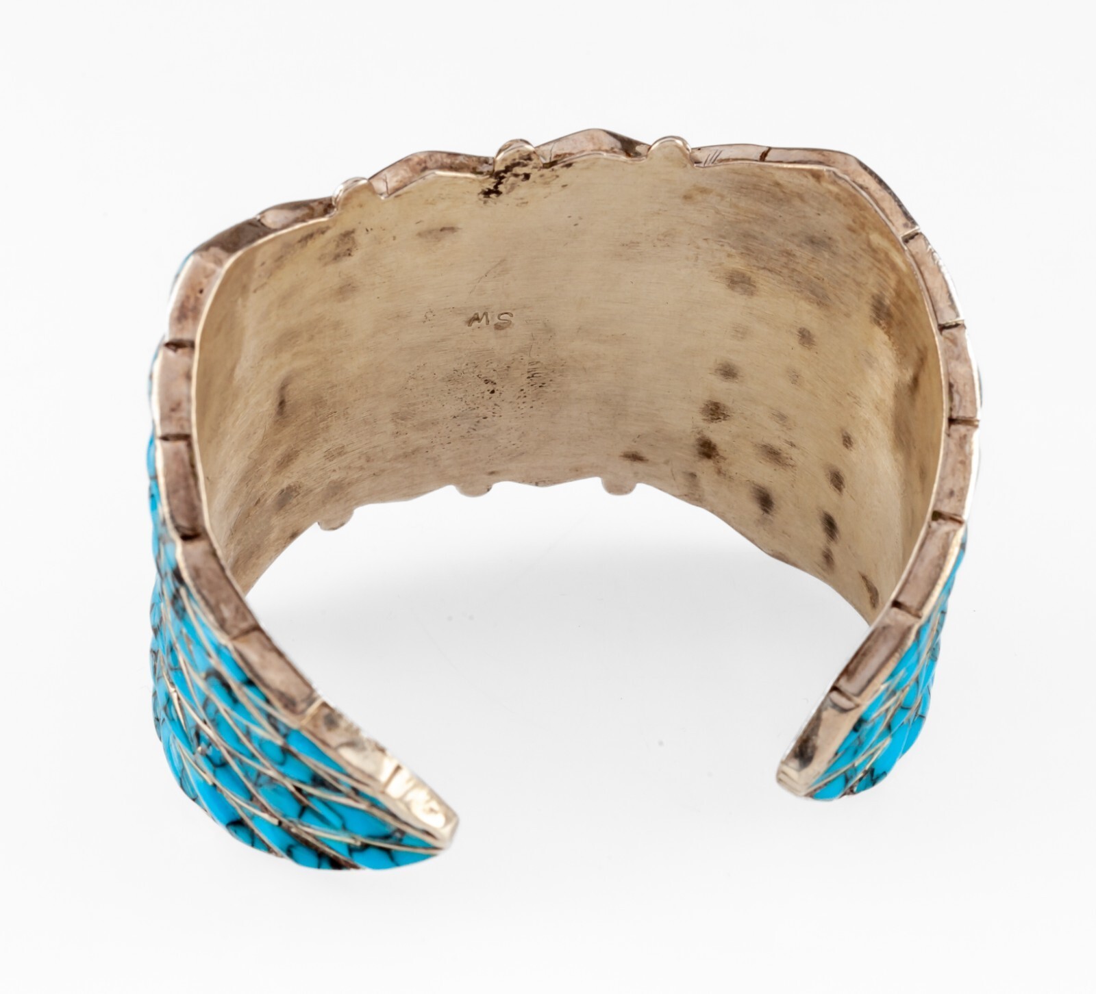 - Navajo Signed SW Sterling Mosaic Turquoise Inlay Cuff Bracelet 45 mm wide