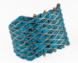 Navajo Signed SW Sterling Mosaic Turquoise Inlay Cuff Bracelet 45 mm wide