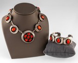 - Navajo Sterling Silver Coral Shadowbox Necklace & Cuff Bracelet Set 85g