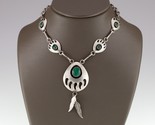 Navajo Sterling Silver Malachite Bear Paw Necklace with Feathers, 27" 24.4g- ...