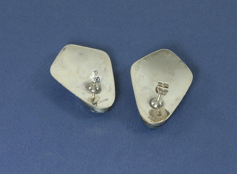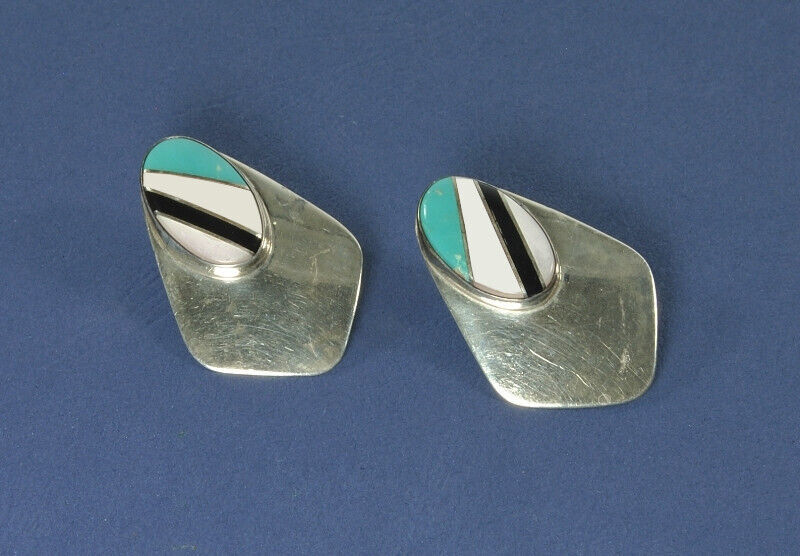 - Navajo Sterling Silver Multi-Stone Inlay Post Earrings Signed Vintage