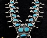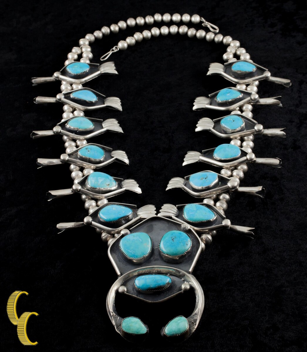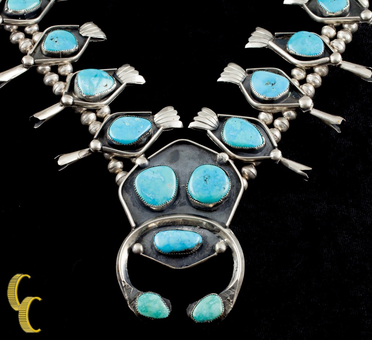Navajo Turquoise Sterling Silver Large Squash Blossom Necklace