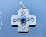 - NAVAJO VINTAGE 925 STERLING SILVER NATURAL LAPIS LAZULI CROSS PENDANT
