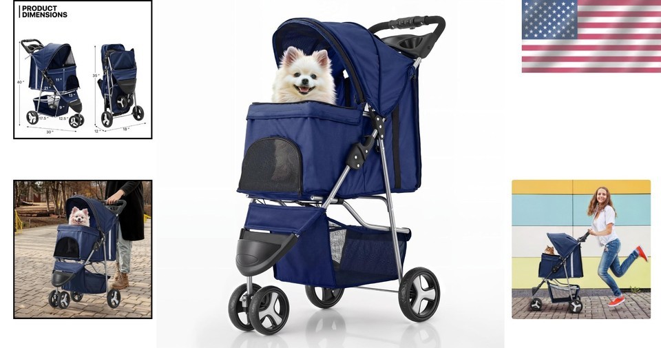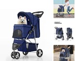 - Navy Blue 3-Wheel Dog Stroller with Breathable Mesh & Advanced Braking System