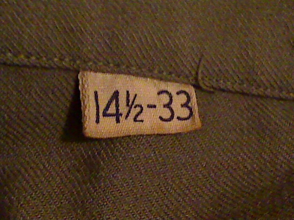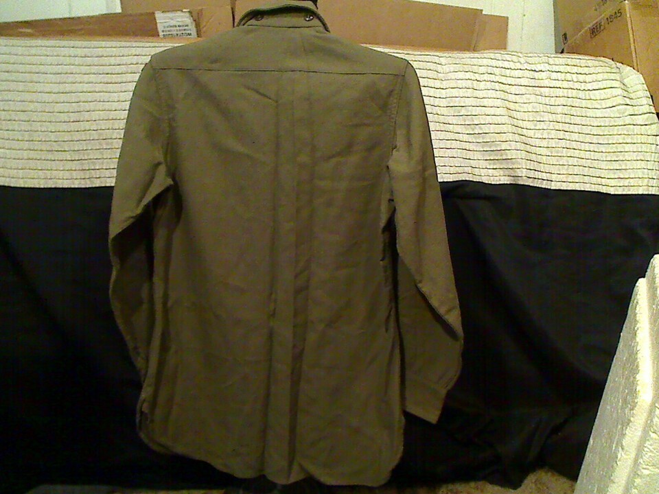 Chest measures about 40" but with the neck only 14 1/2" it cannot be called a Large. It is Excellent condition, almost perfect, held back only by a few small nips right at the top inside of the collar as worn or on a hanger. Scarce shoulder insignia and the Technical Corporal patches are not scarce but less common than most. The shoulder patch is cut edge and the stripes are embroidered directly onto felt. The quality of the garment as manufactured is top shelf and it is very close to the day it was made in condition. Authentic WWII military garment, patches original to it, I have never once added any, all uniforms are as they come to me. Again, the premium condition must be emphasized.